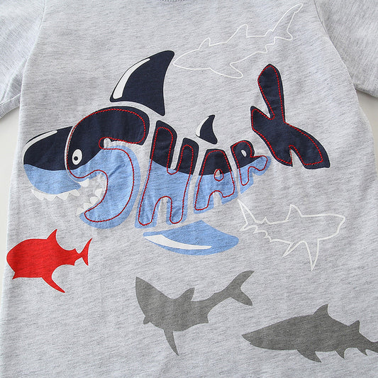 Summer New Cartoon Round Neck Boy Suit
